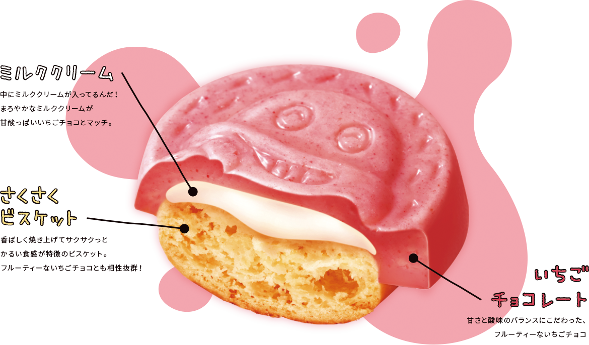 びっくらチョいちごが飛び込んだ先は、もぐ五郎さんが掘り当てたホワイトチョコの池の中。すると…池のまわりのチョコがみるみるうちにいちご色に!