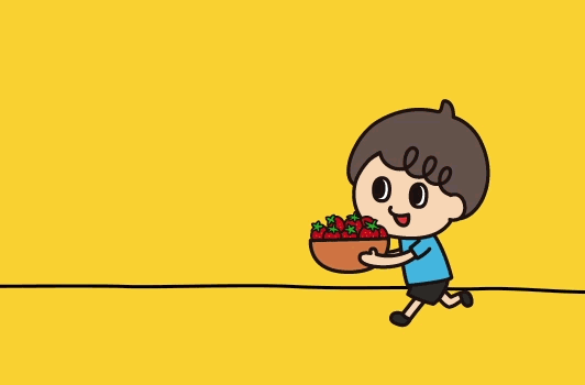 おすチョわけある日のこと、少年はチョコデール山に住むチョコジローにいちごのおすそわけに行きました。