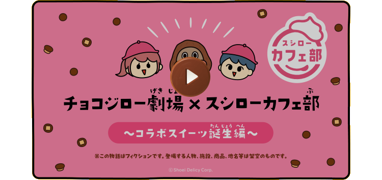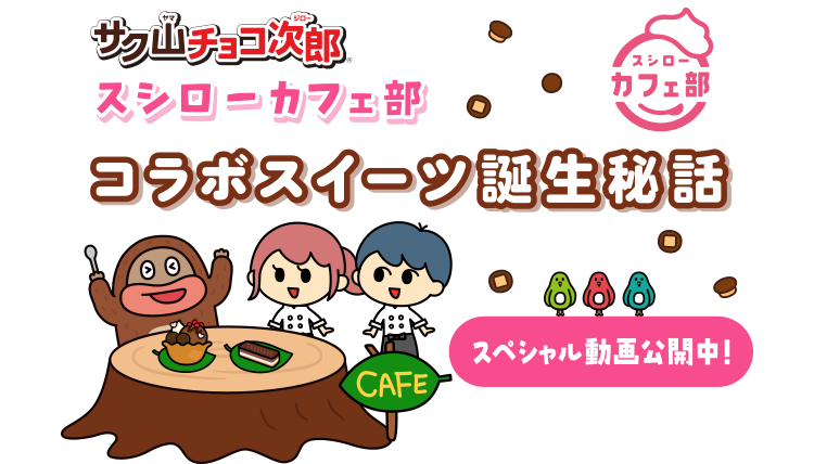 ※コラボ期間は終了しました。 耳をすませてみて。チョコデール山から「おいしい音」が聞こえてきたよ! 歌に合わせてみんなでいっしょに「チョコジロー絵描(えか)きうた」をかいてみてね! 動画を見てると、ついつい同じしせいで身体がカチコチに!?チョコジロー体操でじゅんび運動してね! チョコジローとチョコデール山の仲間たちのエピソード三部作だよ。 シアターAちゅーすけ編 シアターBハチマル編 シアターCポロリン&コロリン編 フラフープに水泳、でんぐりかえし、みんなもチョコジローのチャレンジをおうえんしてね! 30秒以内に上と下の動画をみくらべて6つちがうところをみつけてね! チョコジローとの出会い~はじまりのものがたり~ チョコジローとぼくがはじめて出会ったお話しだよ。 サク山チョコ次郎講座 チョコビスのおいしい食べ方を紹介するよ。 サク山チョコ次郎の食べ方講座 チョコビスを食べるならこの動画を見てね! チョコジローのクイズ!こたえてチョ! みんなもクイズにチャレンジしてみてね! さあ!チョコジローといっしょに、みんなでおどってみよう!歌詞を見ながら大きな声で歌ってね!