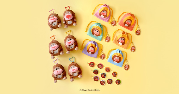 A賞BIGチョコビスクッションをはじめ、普段使いに便利なグッズやキュートなマスコットチャームも。全国のローソン、ミニストップ、ゲオ(くじ取り扱い店)にて、2月27日(金)から発売!