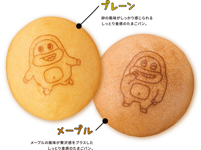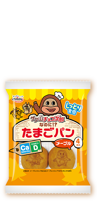 チョコジローのかわいいイラストがプリントされているよ そのままはもちろん、冷やしても、温めてもおいしい! ●冷やす場合 袋のまま冷蔵庫や冷凍庫で保管し、冷たいままお召し上がりください。 ●温める場合 袋からたまごパンを1個取り出して、電子レンジ(600W)の場合:10秒 ※袋から取り出して加熱してください。品質保持剤は電子レンジで加熱しないでください。 ※加熱後はやけどに注意してお取り扱いください。 ※加熱時間は機種や加熱状況に合わせて調整してください。 プリントの種類は全部で16種類