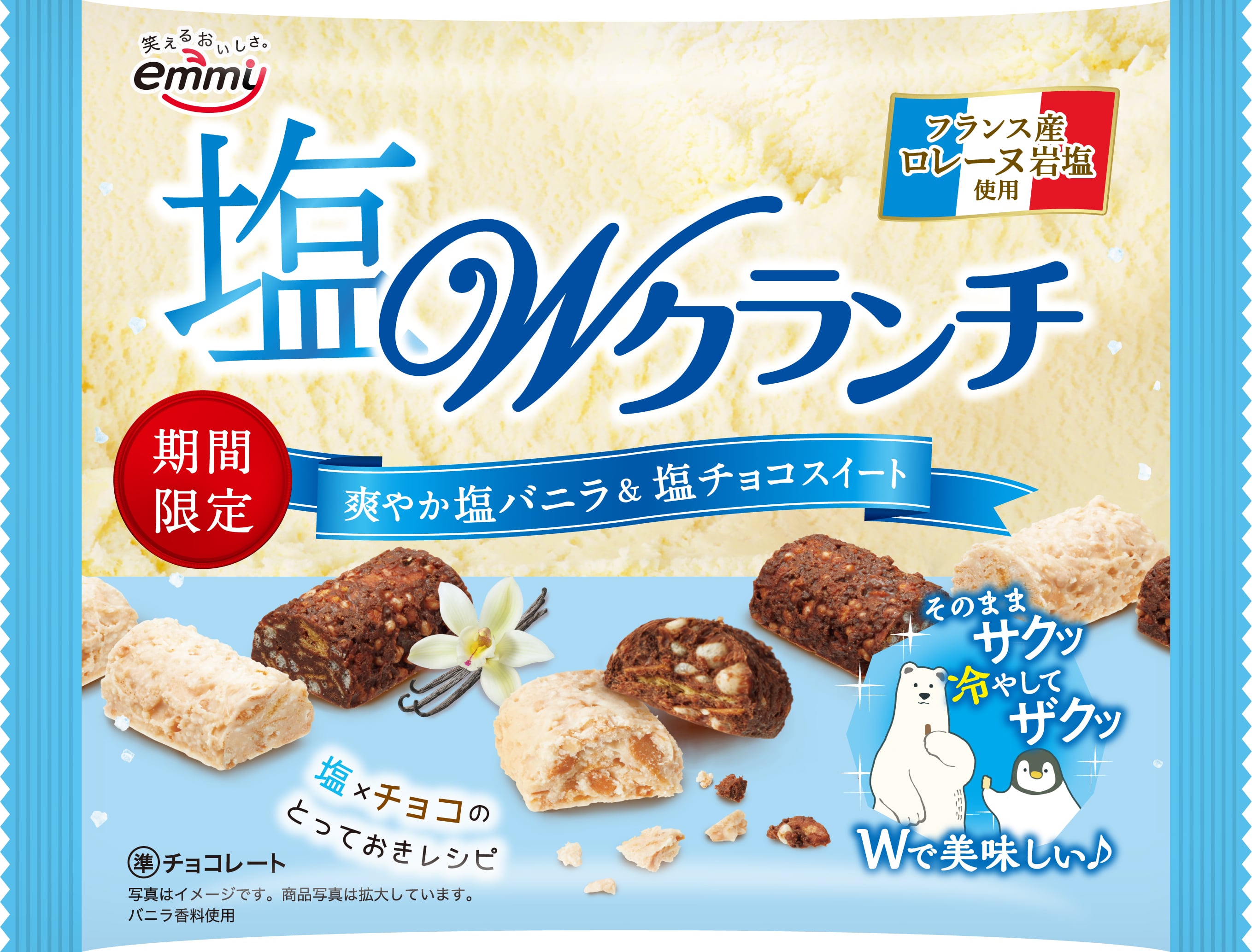 ・バニラの優しい甘さと塩味がマッチした「爽やか塩バニラ」と、チョコレートのコクがありながらすっきりとした後味の「塩チョコスイート」の